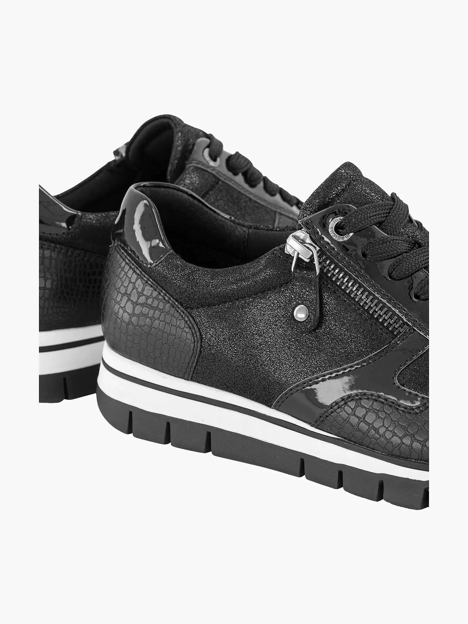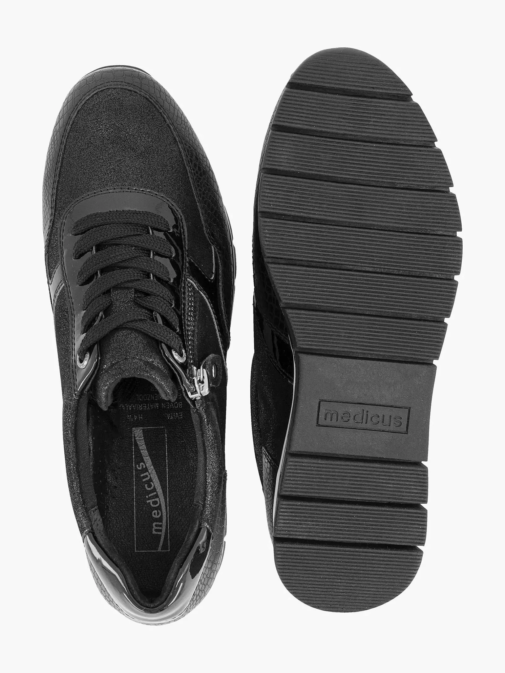 Dames Medicus Zwarte Leren Comfort Sneaker Croco